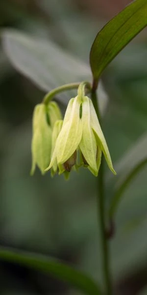 This elegant woodlander was introduced by the American plantsman Dan Hinkley. Tall, upright, branching bamboo like stems gently curve at their tops, bearing creamy-green to white hanging bell-shaped flowers at their tips in spring.
