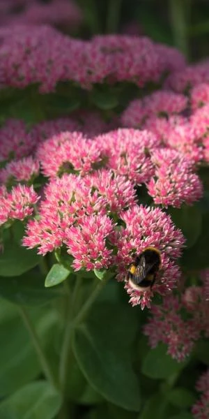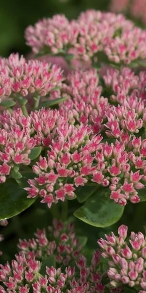 Large, flattish clusters of pale pinkish-green buds, open to small, pale pink flowers that bronze to dark pink/red as they mature. These are held on sturdy, grey-green stems with very gently toothed leaves. ‘Herbstfreude’ is an iconic cottage garden plant, whose popularity is well-deserved for its showy, long lasting and ever evolving display.