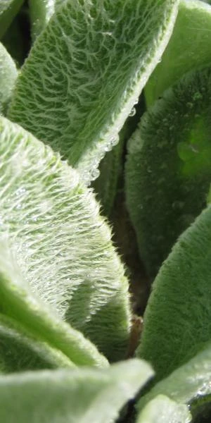 ‘Lambs’ Ears’, as it is commonly known, produces soft velvety, silver-grey upright, sturdy stems with oval leaves and small pink, slightly insignificant, flowers from low lying dense rosettes.The whole plant is woolly. This is a very good plant for a sensory garden, due to its extremely tactile and inviting foliage, but it is tough and hard-working too.